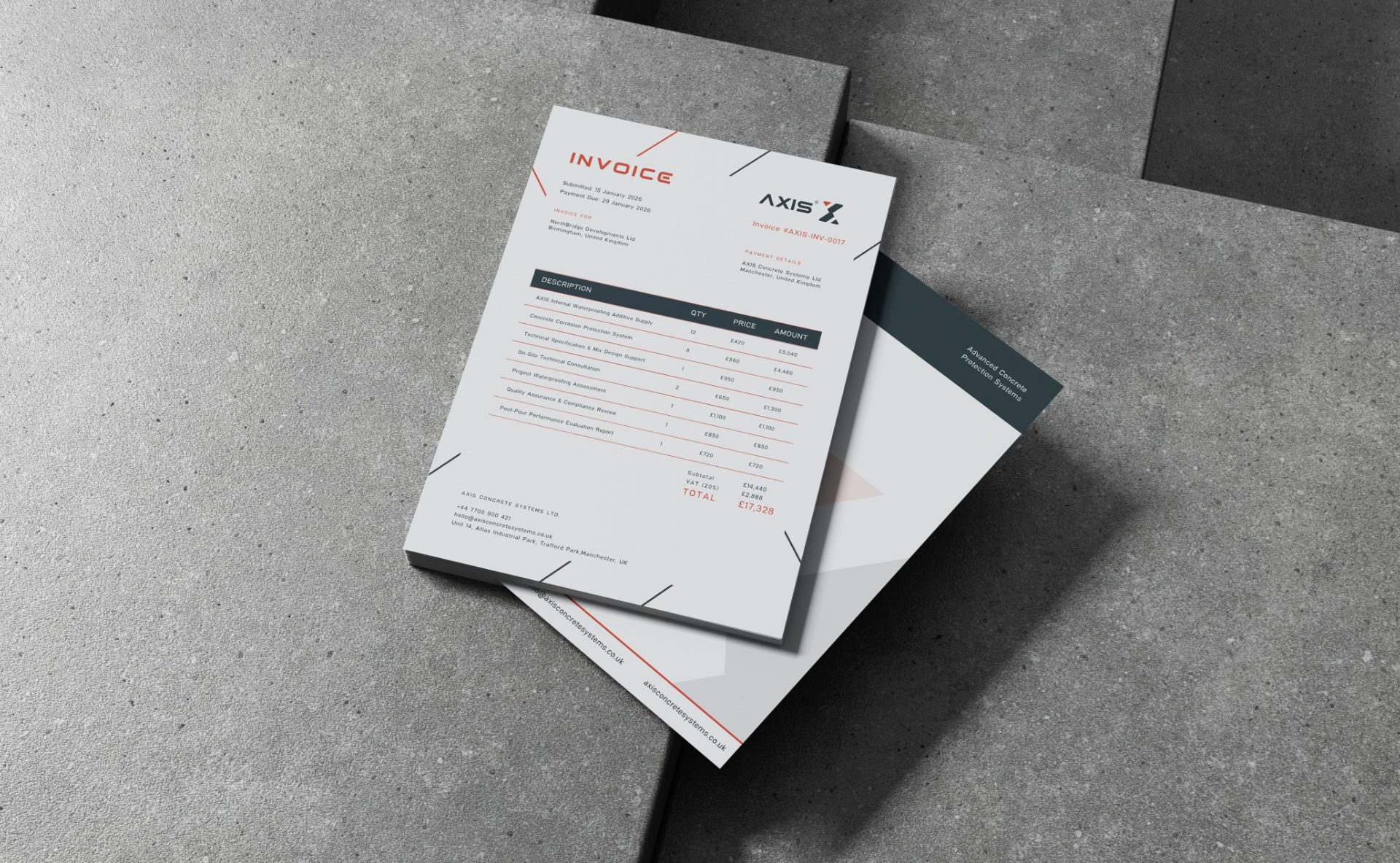 Create a powerful, credible brand identity that matched the quality of AXIS’s technology and positioned the company as a global authority in waterproof concrete.