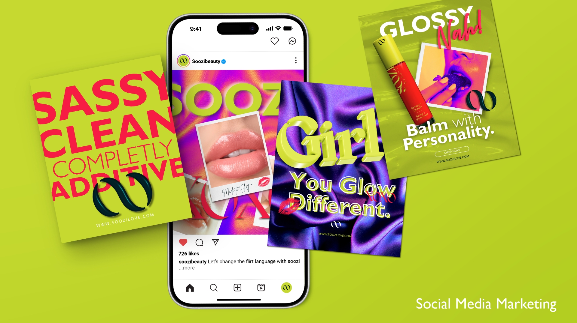 The challenge was to develop a brand presence that felt trendy and colorful without losing credibility in the clean beauty market. Soozi needed packaging and visuals that would stand out to a young, style-driven audience while still reflecting the quality of its natural ingredients.