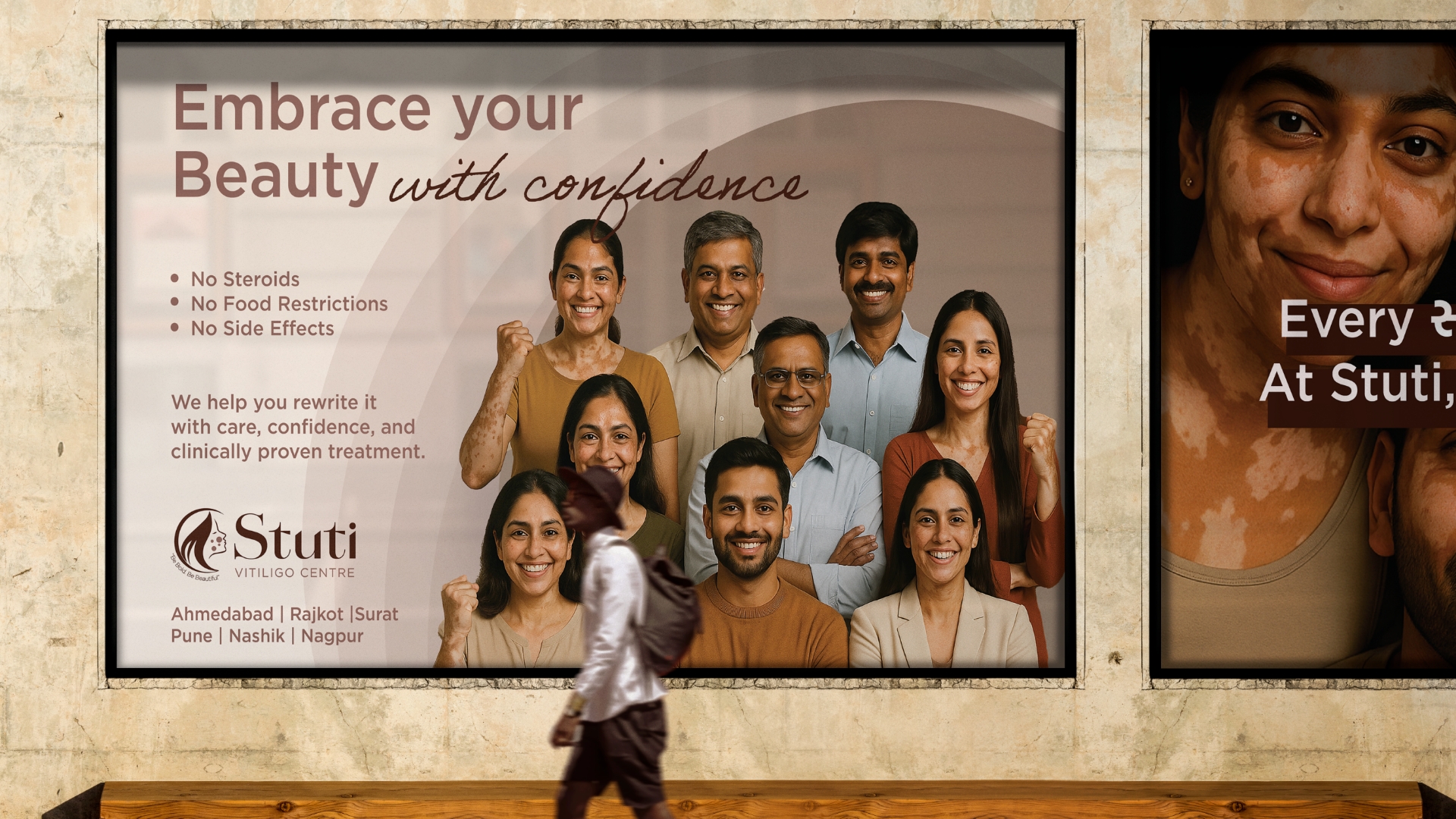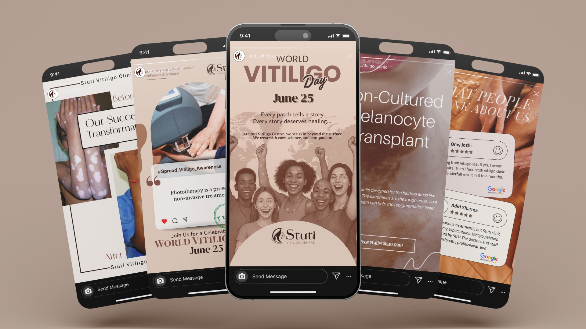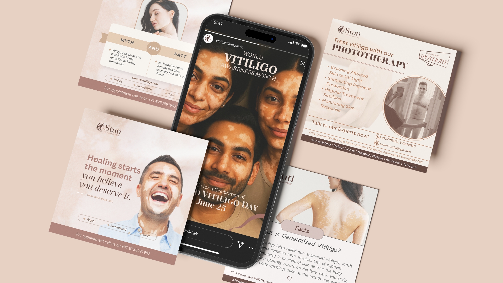 Through a combination of branding, strategy, marketing, and advertising, Stuti Vitiligo Centre now has a stronger visual identity, a consistent digital voice, and an improved ability to connect with people. The project proved that thoughtful design and storytelling can not only elevate a brand but also create meaningful change by reducing stigma and inspiring confidence.